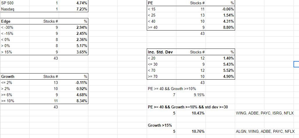 Amanhã colocarei aqui a rentabilidade desta semana das 5 acções que tenho seguido desde o inicio com Crescimento > 15% (ADBE, ALGN, NFLX, PAYC, WING). Mas como podem ver pela tabela os resultados foram excelentes.