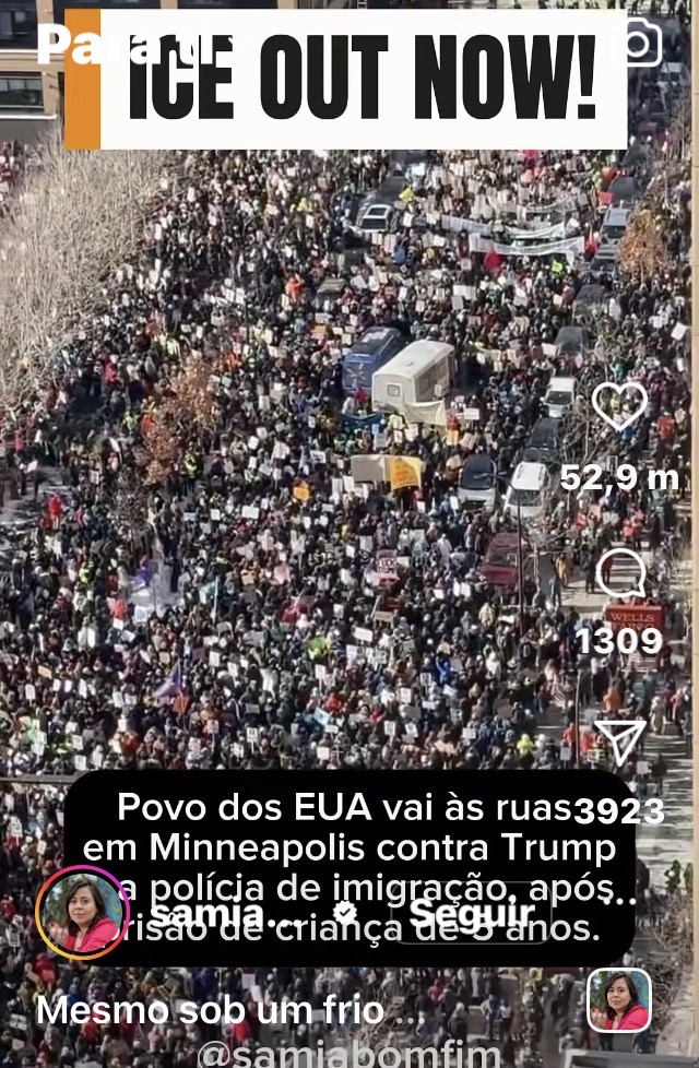 “Em Nova York, a população ocupa as ruas em ato contra o ICE, a polícia migratória federal dos EUA que assumiu o papel de milícia de Trump.