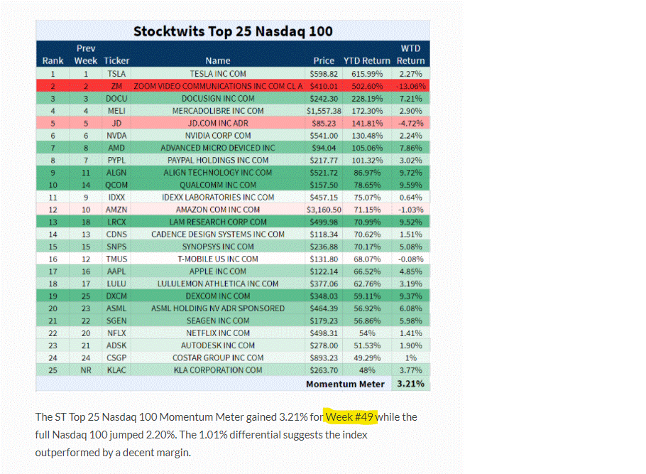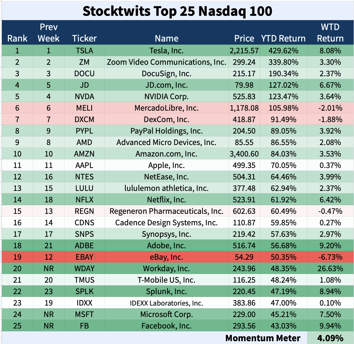 The Stocktwits Top 25 Nasdaq 100 (Week 35 - 25 a 29 de Agosto)