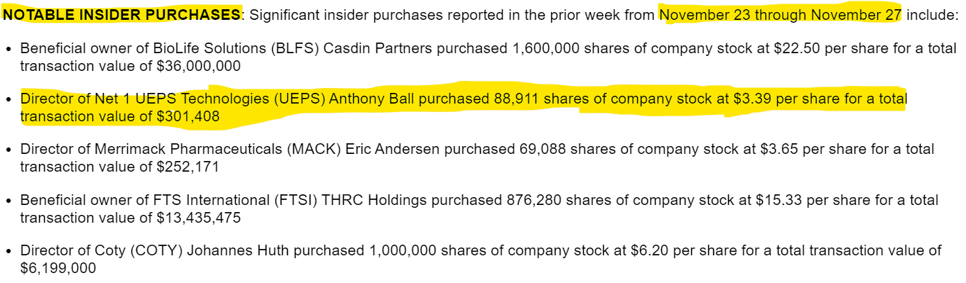 UEPS Insider Purchases