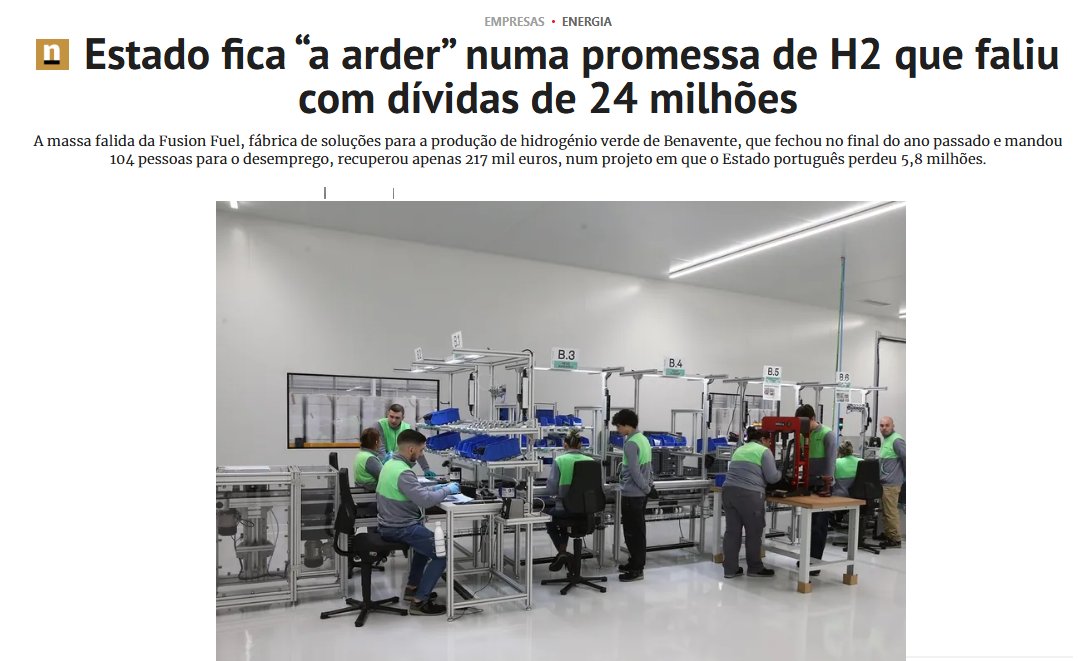 MarcoAntonio Escreveu:Fusion Fuel muda foco do hidrogénio verde para o gás para tentar salvar a empresa - Energia - Jornal de NegóciosCom a fábrica de eletrolisadores de Benavente parada, e sem dinheiro para pagar a trabalhadores e funcionários, a Fusion Fuel anunciou a compra de 70% de uma empresa americana de fornecimento de gás.