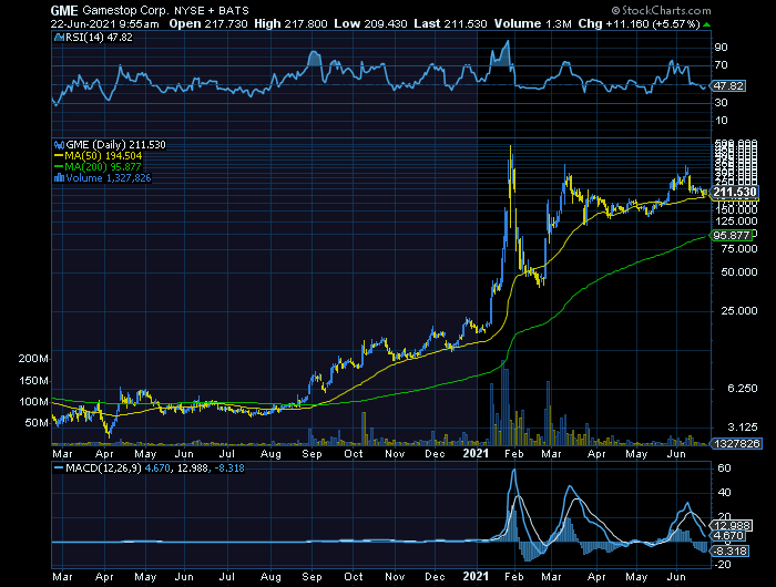 II - Já nos shortsqueezes, a doutrina diverge! Especulo que os ciclos AMC (mais de 6000% de valorização) e da generosa GME (mais de 12.000% de valorização em máx.) em 7 meses, estão prestes a fechar-se, apesar do Juneteenth e da Gamestop (GME) entrar agora para o Etf ishares Russell 1000 (marcará o princípio do fim GME para o WSB).