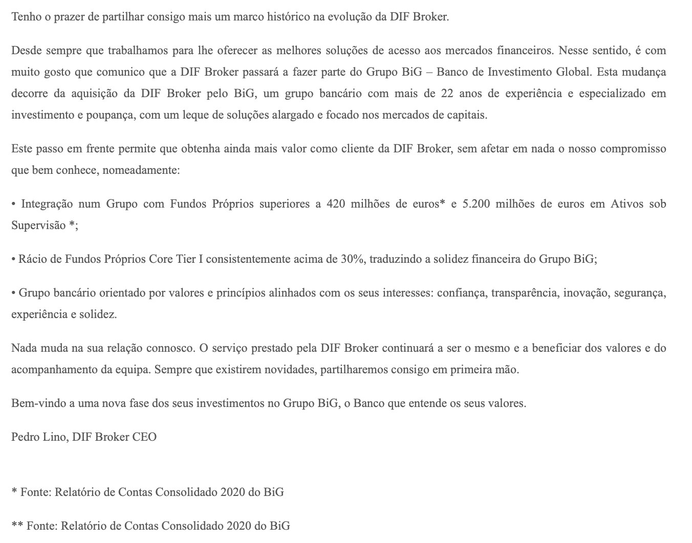 Excelente ! O banco BIG é o melhor banco para negociar nos mercados bolsistas, têm várias plataformas, inclusive para cripto. Esta aquisição só vai melhorar a dimensão do BIG !