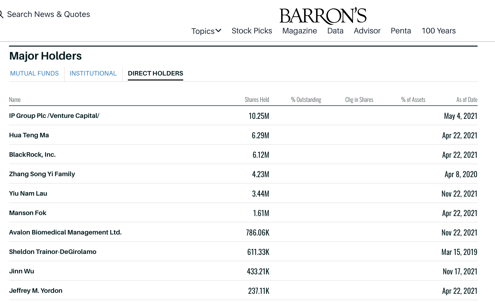 (revised)edithttps://www.barrons.com/market-data/sto ... =searchbar (Major Holders - MUTUAL FUNDS | INSTITUTIONAL | DIRECT HOLDERS)