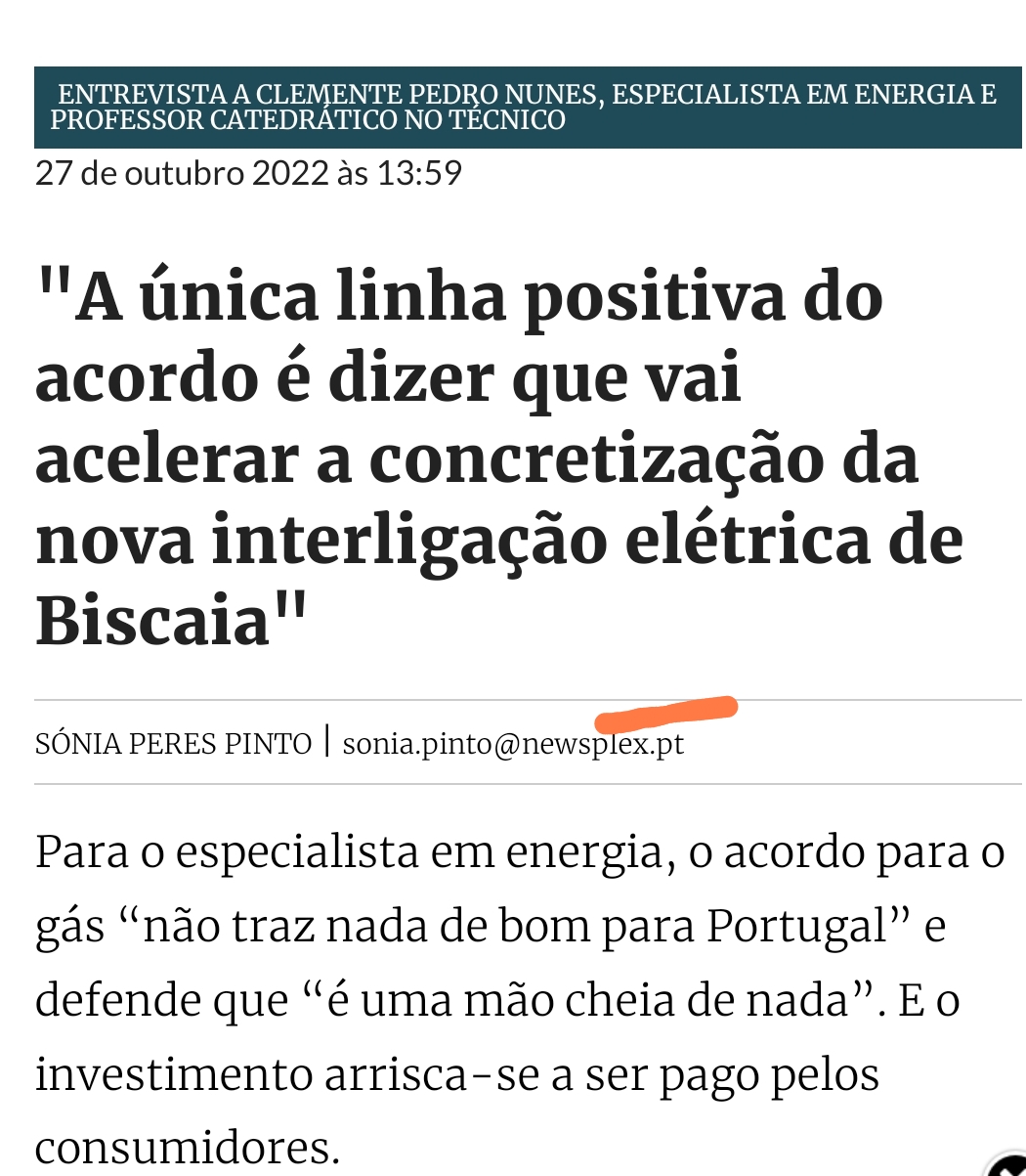 - Porque motivo vai Portugal comparticipar num projeto de gasoduto especial (para gás natural e hidrogénio verde) se Portugal é importador de gás natural e o hidrogénio verde é ainda uma miragem que nem sequer se sabe se alguma vez irá substituir o gás natural, tendo em conta a evolução rápida de pesquisa em fontes de energias alternativas?