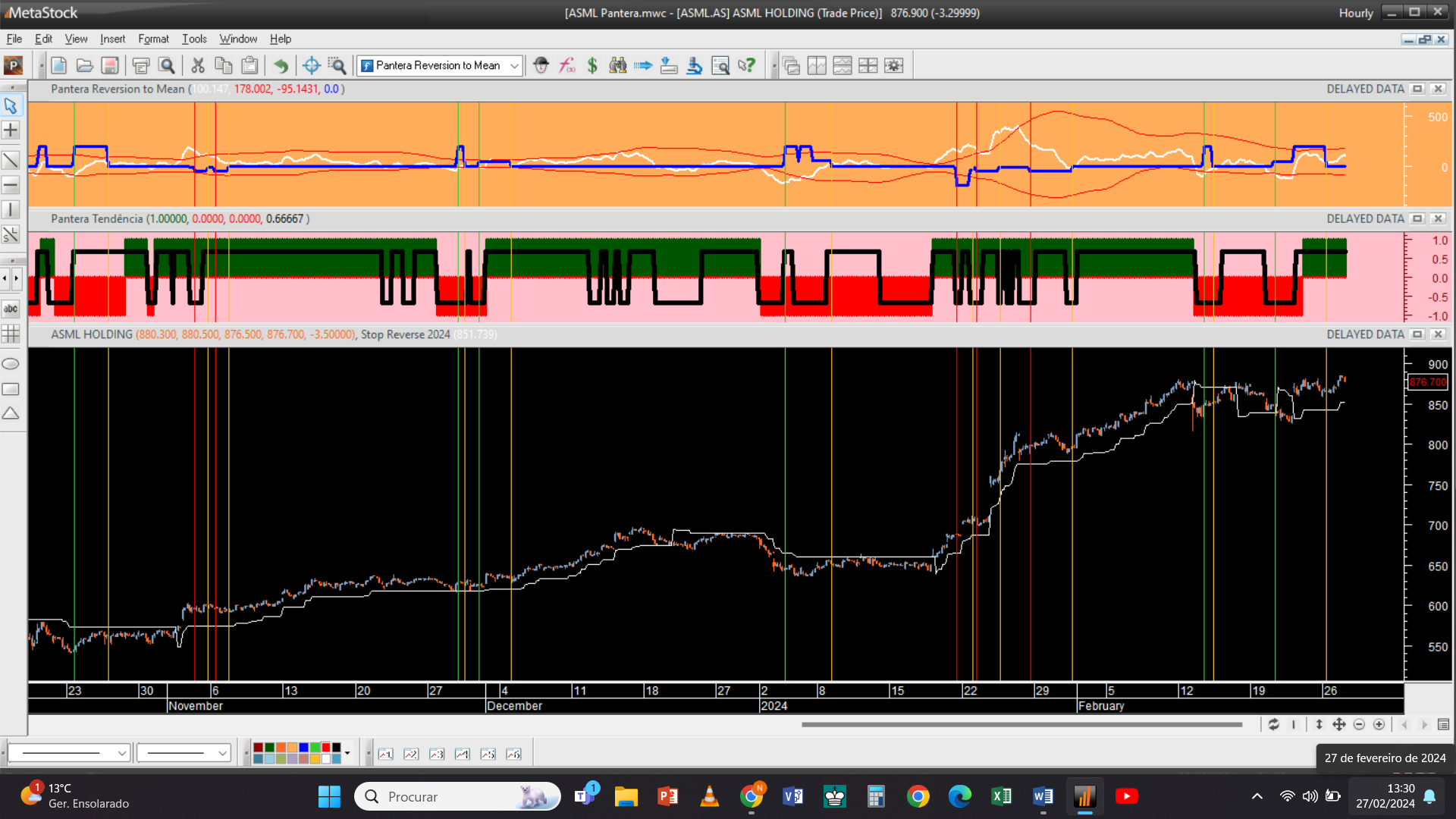 Em paralelo temos de operar uma plataforma de trading para transmitir as ordens de compra e venda em tempo real, eventualmente com alguns segundos de atraso, relativas às ordens diretas que sejam ativadas pelos alertas do Metastock, executando portanto trading manual à vista baseado no disparo das respetivas ordens.