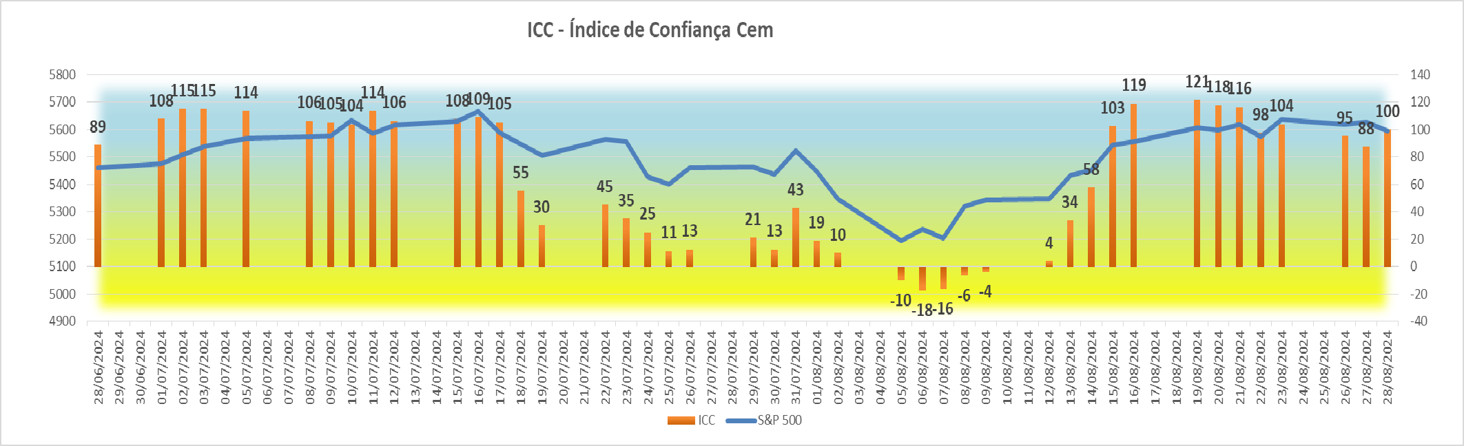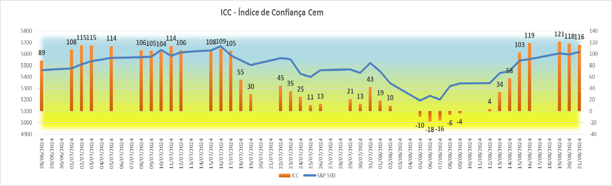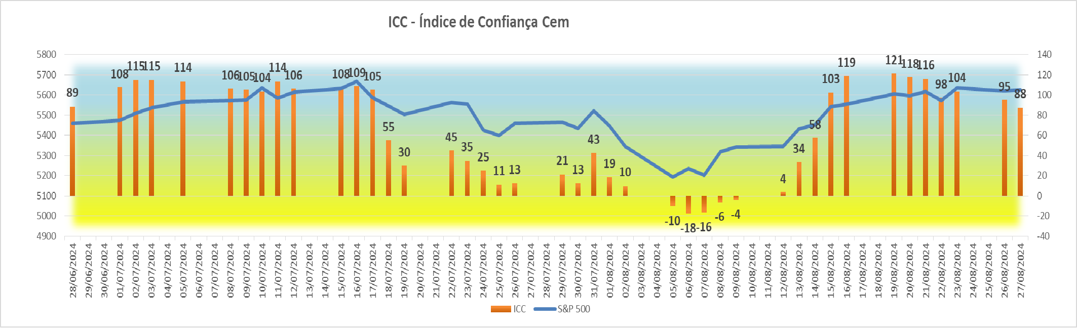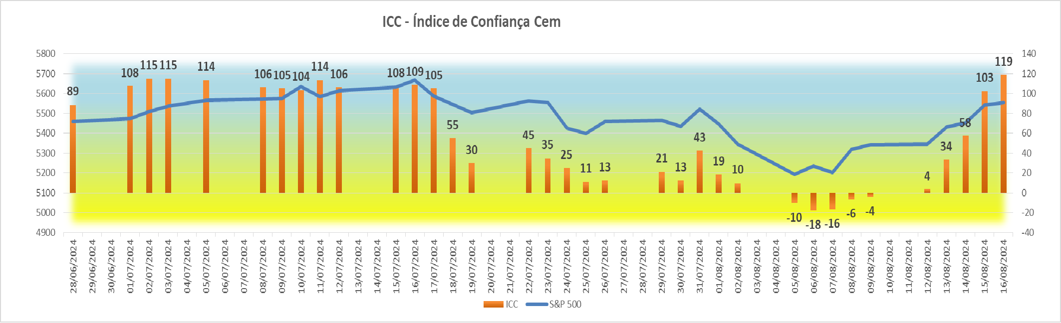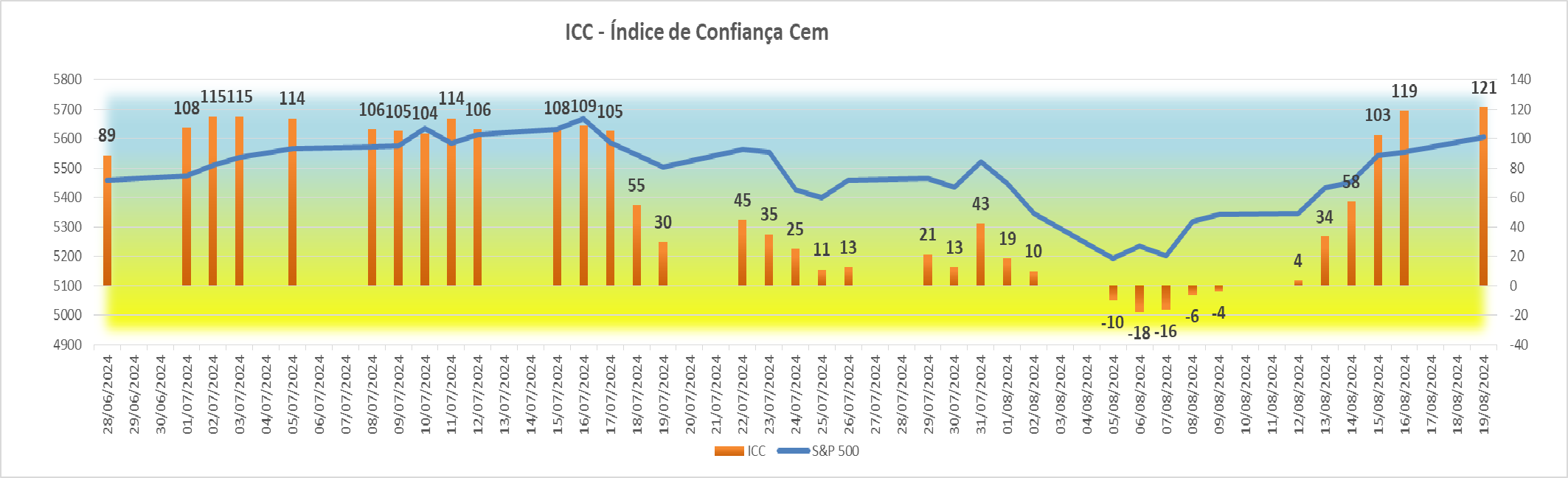 Esta subida agradável registada na sessão americana fez com que houvesse igualmente uma subida bem simpática no índice ICC, fazendo ascender o seu valor de +4 para +34 pontos.