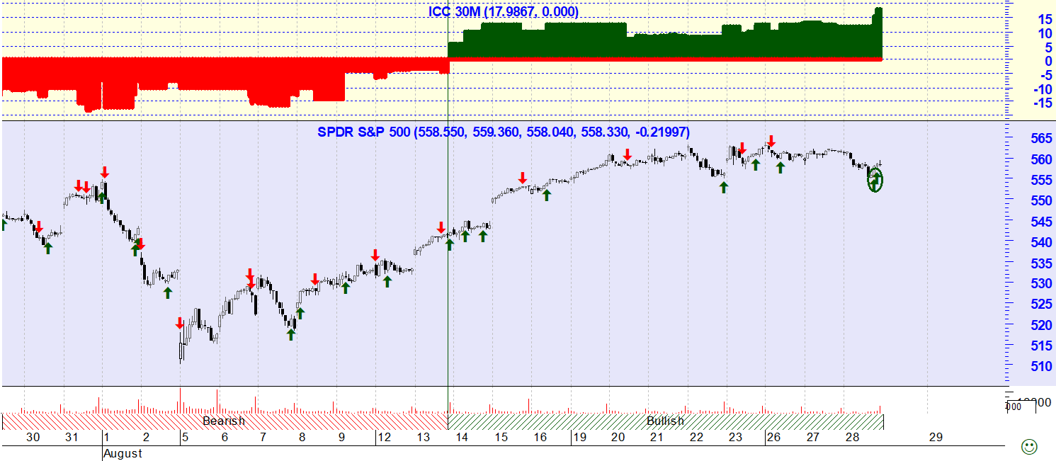 Ou seja, segundo o indicador ICC esta altura é mais propícia a assumir pequenas posições curtas ou vendidas do que no final da sessão de ontem.