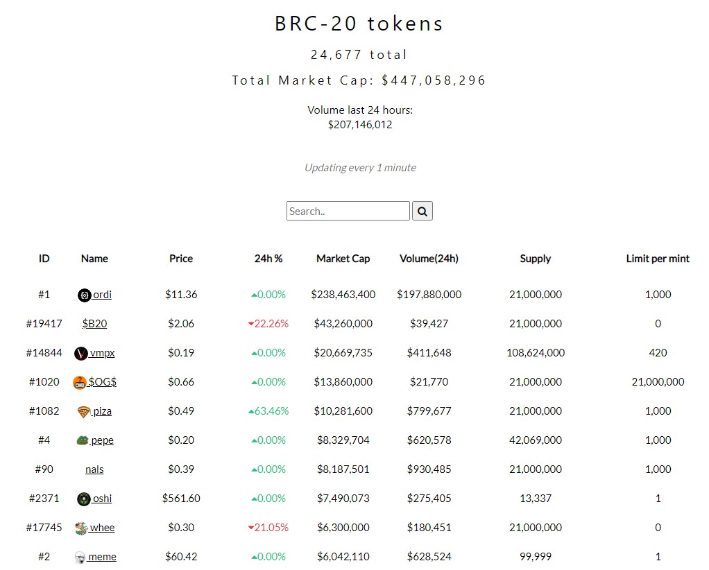 Mais informação sobre os tokens BRC-20 cunhados aqui https://brc-20.io/