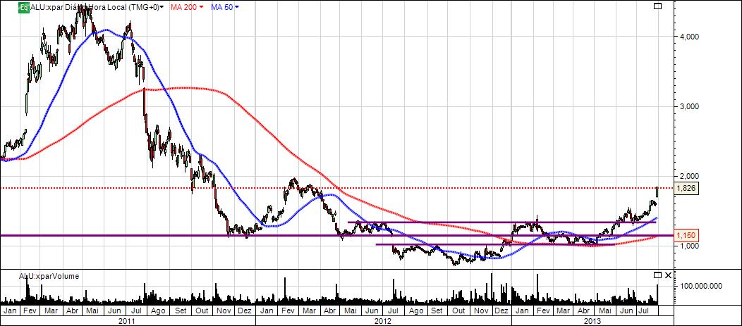Com os mercados muitos voláteis e com quedas....a ALU tem se aguentado, mostrado força e acima da resistência 1,35.