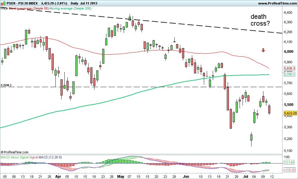 A somar a Yelds a subir, corte de Rating e Outlook ainda temos quase quase as MM de 50 e 200 a cruzarem-se o que pode significar