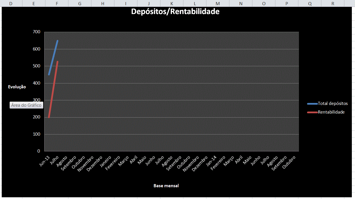 No início, para um total de depósitos de € 650,00, a rentabilidade chegou a descer para € 200,00, ou seja, em relação ao montante depositado, uma perda de € 450,00!