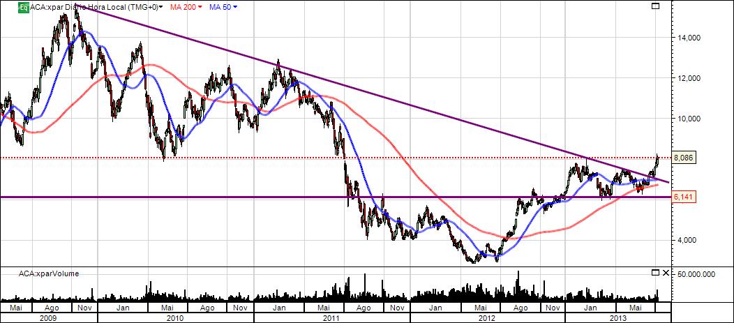 Tecnicamente anda num canal ascendente nos últimos dois anos, na minha ótica muito ligado o momento que vive o setor.