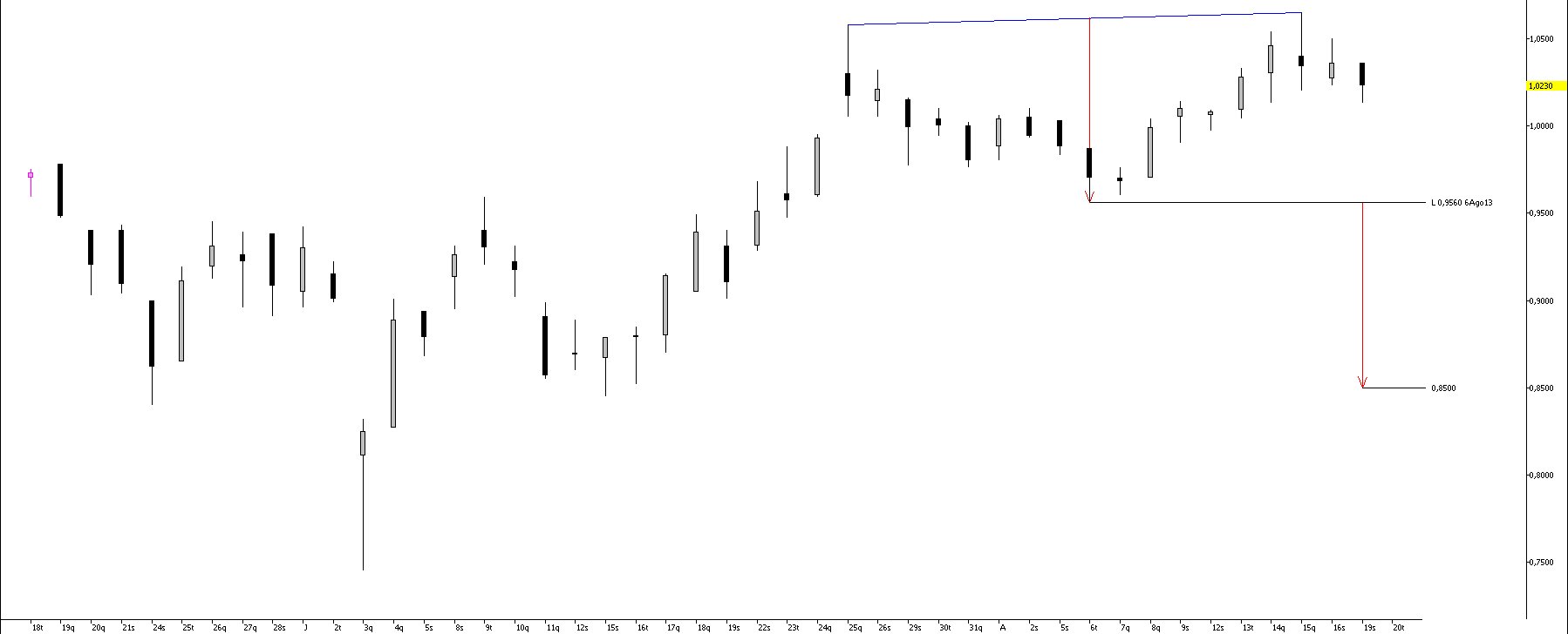 Quanto ao limite até pode ultrapassar (furar) os € 1,065 (máximo do dia 15 de agosto) mas cuidado que voltará para trás.