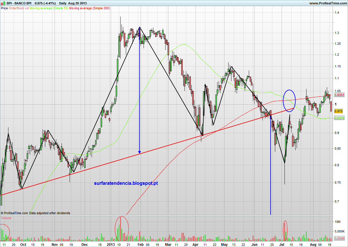 AChas mau o comportamento do BPI ? EU acho precisamente o contrario. A golden cross anterior fez disparar o preço até estes valores actuais
