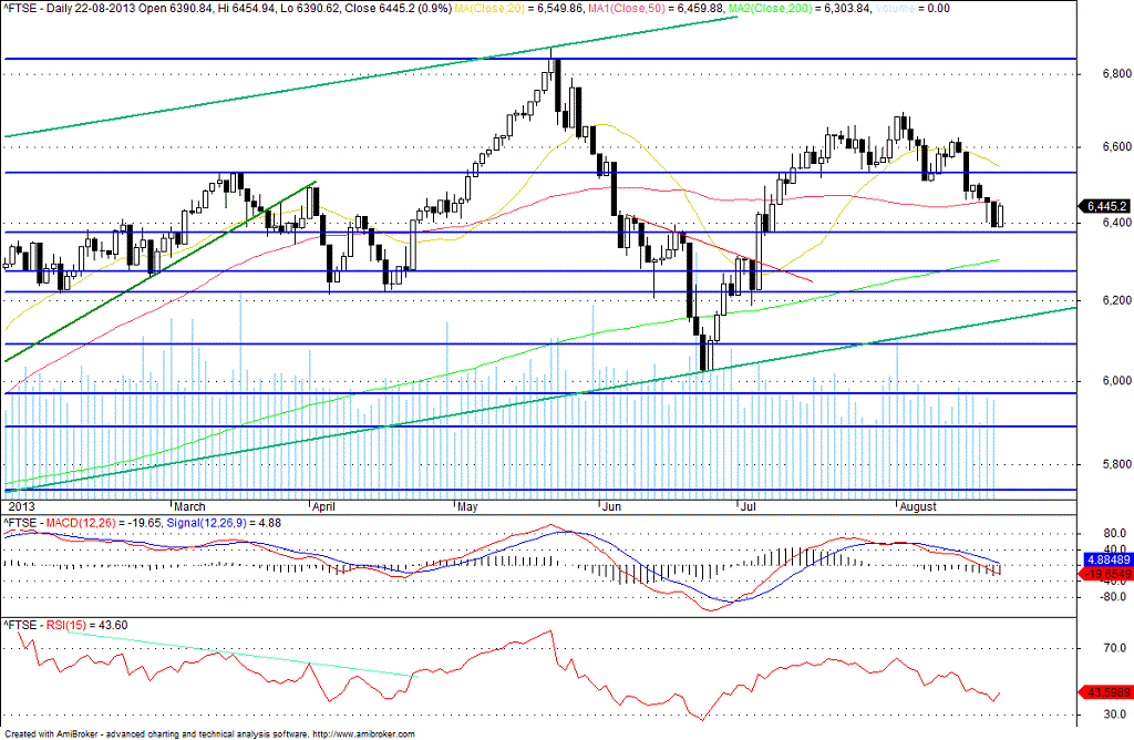 Ftse em zona de suporte dos 6375/6400
