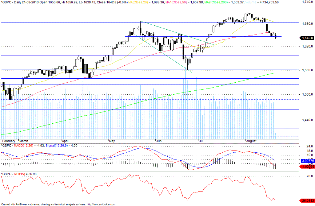 A onda correctiva iniciada no dia 2 de agosto poderá ter terminado ontem, porque atingiu a primeira zona de alvos. Digo, poderá, porque pode ainda atingir dois alvos importantes, situados nos 1634 e 1619.