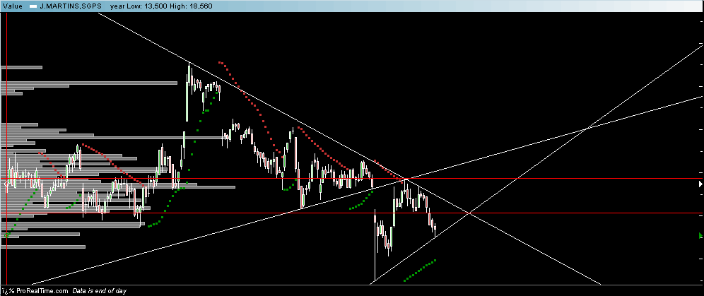 Mas para mim tanto o diário como o semanal estão bears e há certamente ali nos 14,5 - 14,3eur o valor a considerar devido à administração. Mas como o mercado é errático, o preço se for para cair poderá ir bastante mais abaixo.