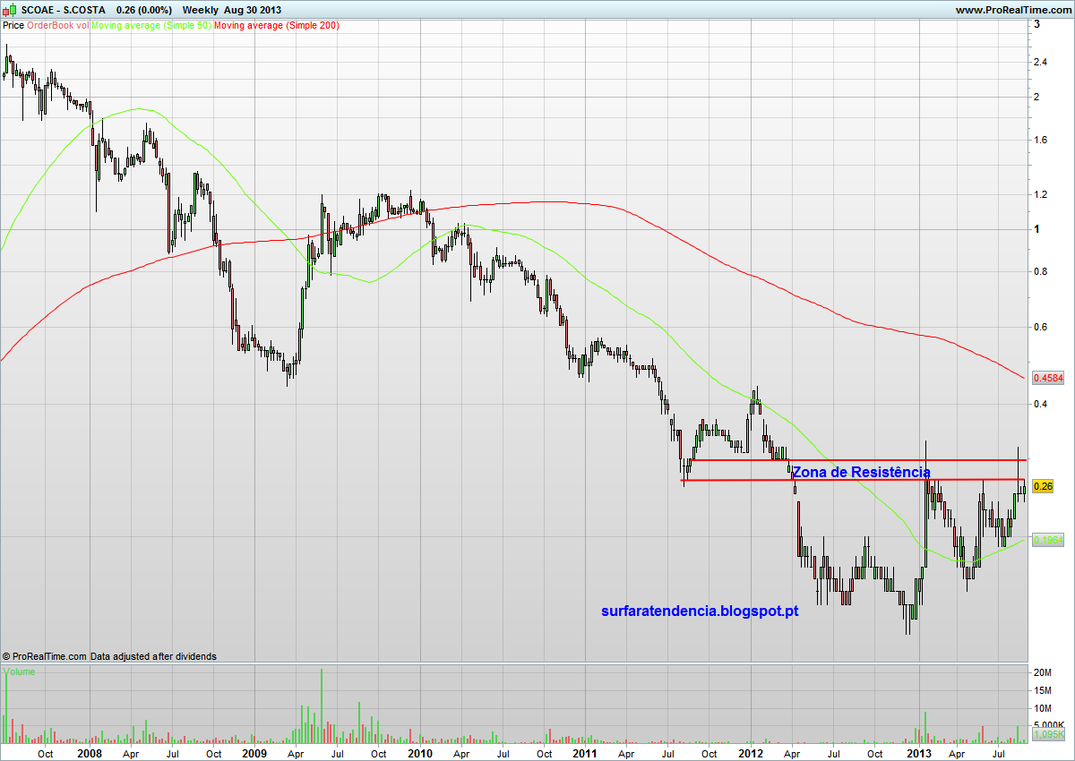 tiagopt Escreveu:Update ao gráfico. Se ultrapassar a zona de resistência pode fazer um rally ascendente. A situação é semelhante à sucedida em 2009, não será fácil dar-se a quebra em alta. Mas nunca se sabe, há que ir vigiando!