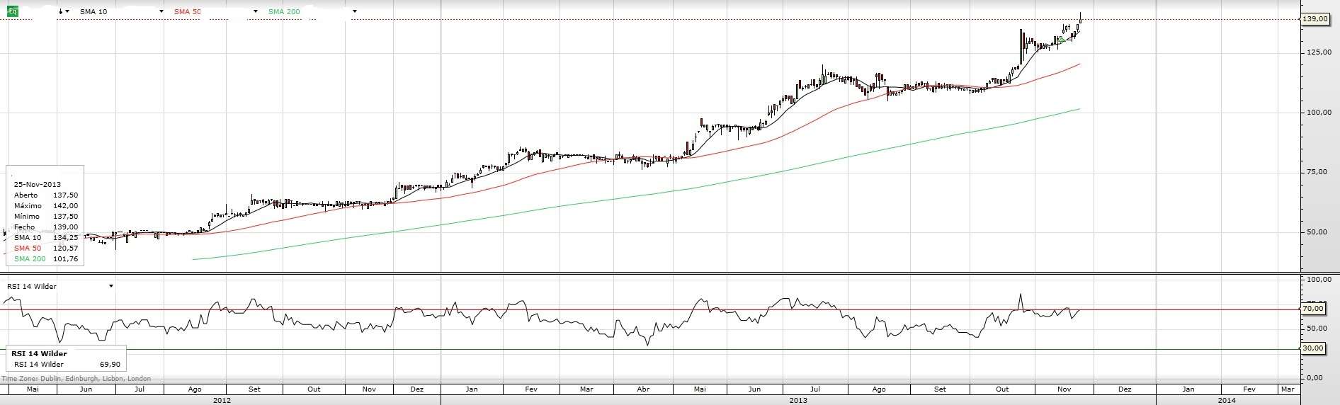 Como só tu tiveste a simpatia de dar um contributo, tive mais tempo para o estudar. Como não sou um ás em AT, fiquei confrontado com as tuas "dicas" e a minha ignorância nessa matéria. Fiz um pequeno TPC, fui ver o que era isso do "overbought ", li umas coisas sobre AT ( básica...!) e conclui que o melhor era despachar o que tinha e voltar a entrar quando esse tal do "overbought" voltasse a passar. E não é que fiz um bom negócio ! Entretanto aprendi mais umas coisas e aqui deixo as minhas reflexões, a aguardar feedbak dos mais entendidos ( Dr. Tretas incluído).
