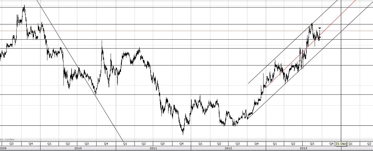Podemos ver uma resistência antiga na zona dos 4,85 mas não dou relevância a resistências de 4 anos, a menos que sejam valores muito importantes como máximos e mínimos históricos. Daí que não considere que haja resistências relevantes. Será o desenrolar dos próximos tempos a criá-las.