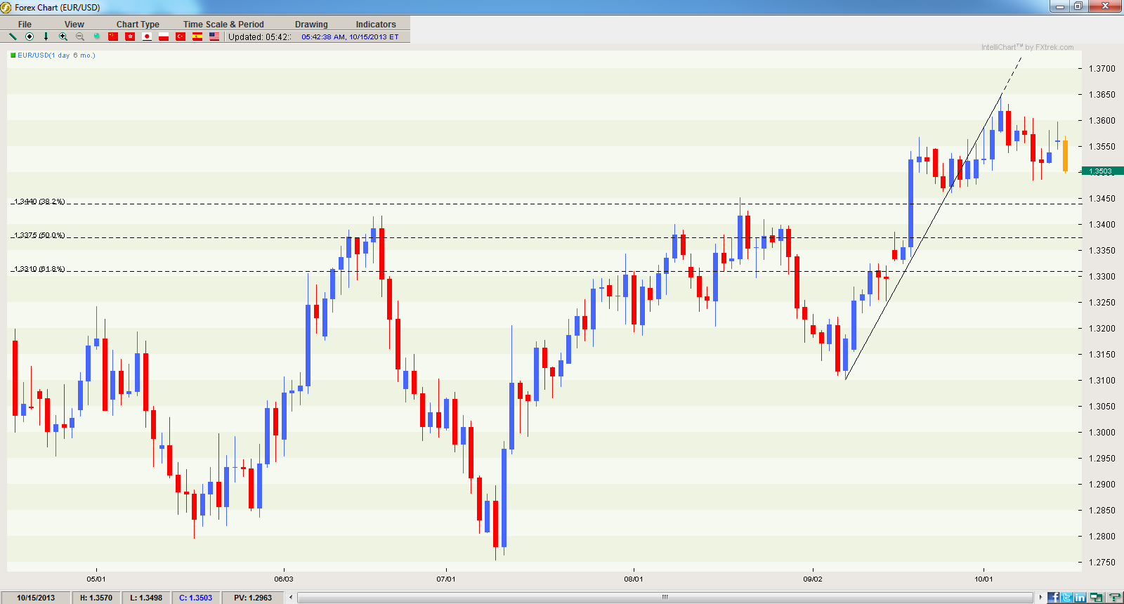 Boa prestação do EUR a chegar finalmente à casa de 1.36, algo que já era de esperar. Recorde-se que a grande barreira é o máximo do ano em 1.37 - aqui as coisas piam mais fino, mas no essencial, creio que não será fácil a obtenção de novos máximos no par, sem luta. Teremos volatilidade nos mercados, à medida que se arrasta o "fecho" do Governo e que se aproxima mais um episódio do "precipício" fiscal.