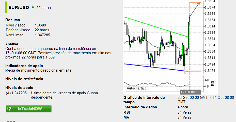 Tens aqui outro gráfico. Um pouco desatualizado e que foi produzido durante a manhã do dia de hoje.É interessante por ser visível que o máximo dos 1,3645 já foi rebentado.Rebentado mas não visível esse rebentamento neste gráfico.De resto, acaba por se constituir como uma previsão de construção de um suposto canal.