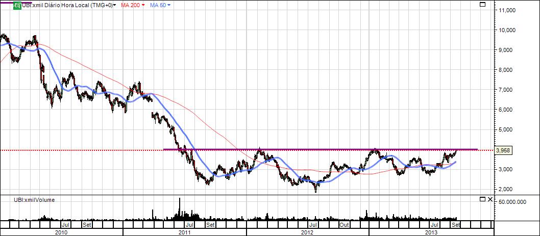 A julgar pelo gráfico de longo prazo, o UBI BANCA está bull em todos os espaços temporais. Quebrou uma LTD de 6 anos e ressaltou no re-teste. Está perto do suporte, e juntando tudo isto, penso que posso afirmar que está (aparentemente) num excelente ponto de entrada longa.