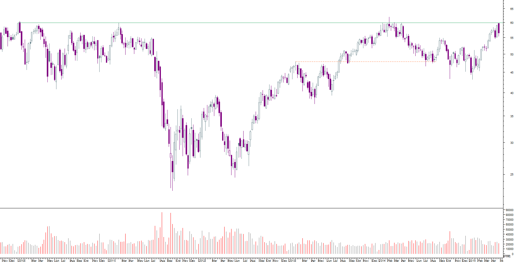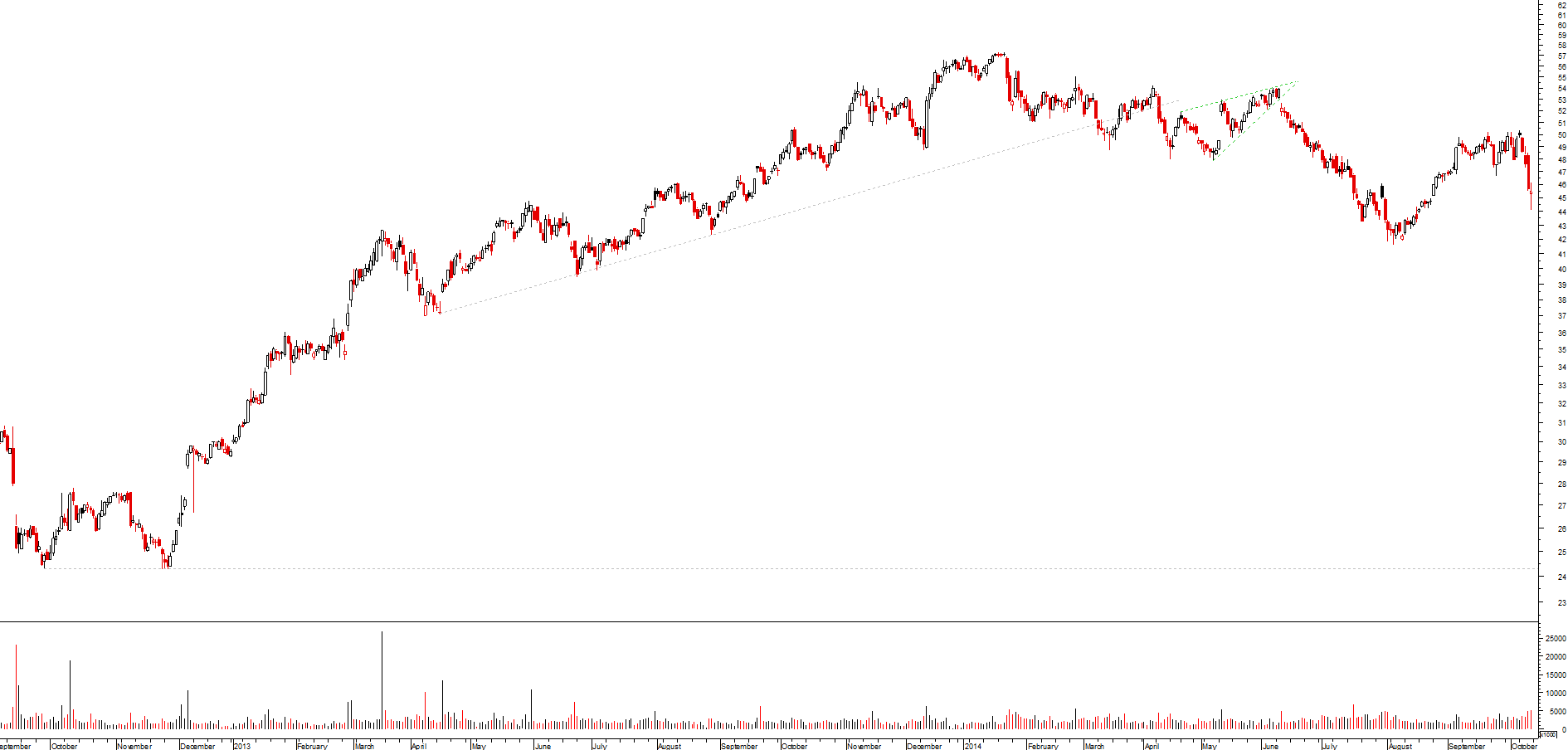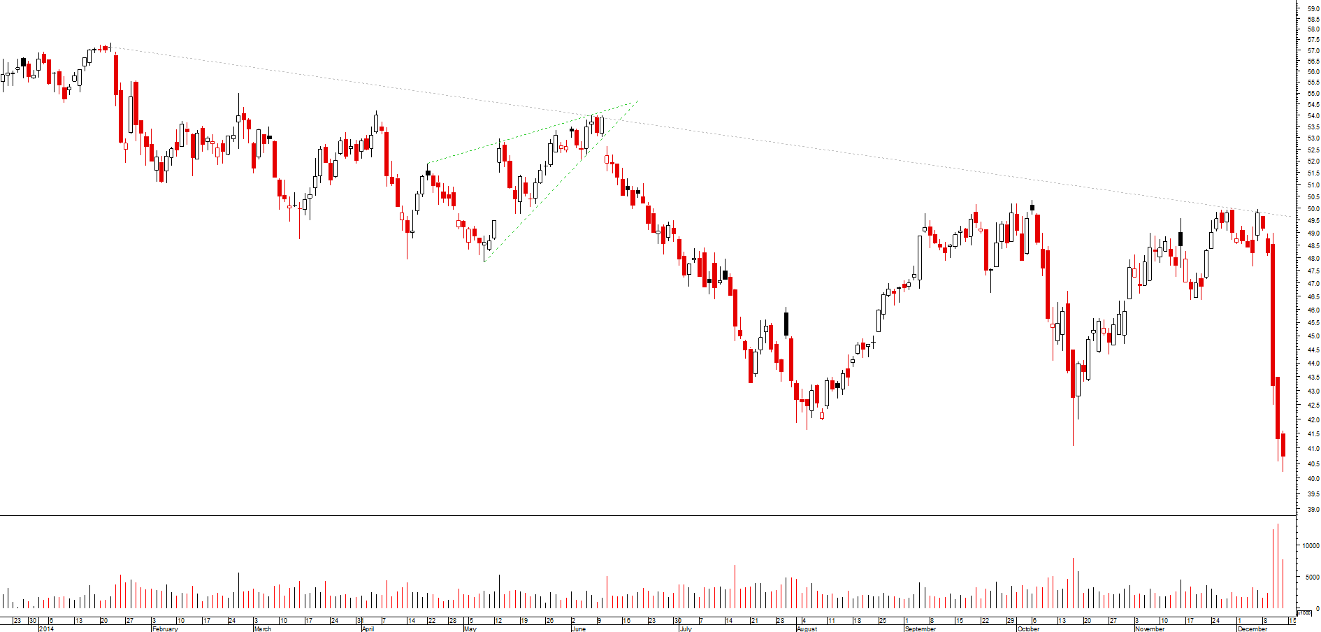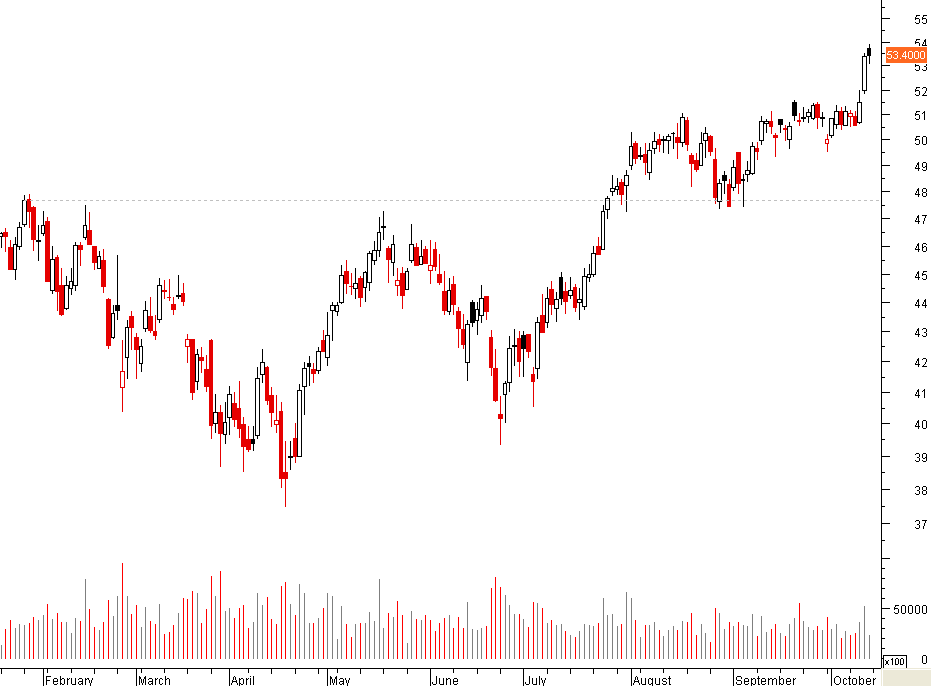 dada a velocidade das quedas do verão passado, o mercado foi incapaz de criar suportes; actualmente o reverso da medalha é que o banco tem caminho aberto pelo menos até aos 48/49