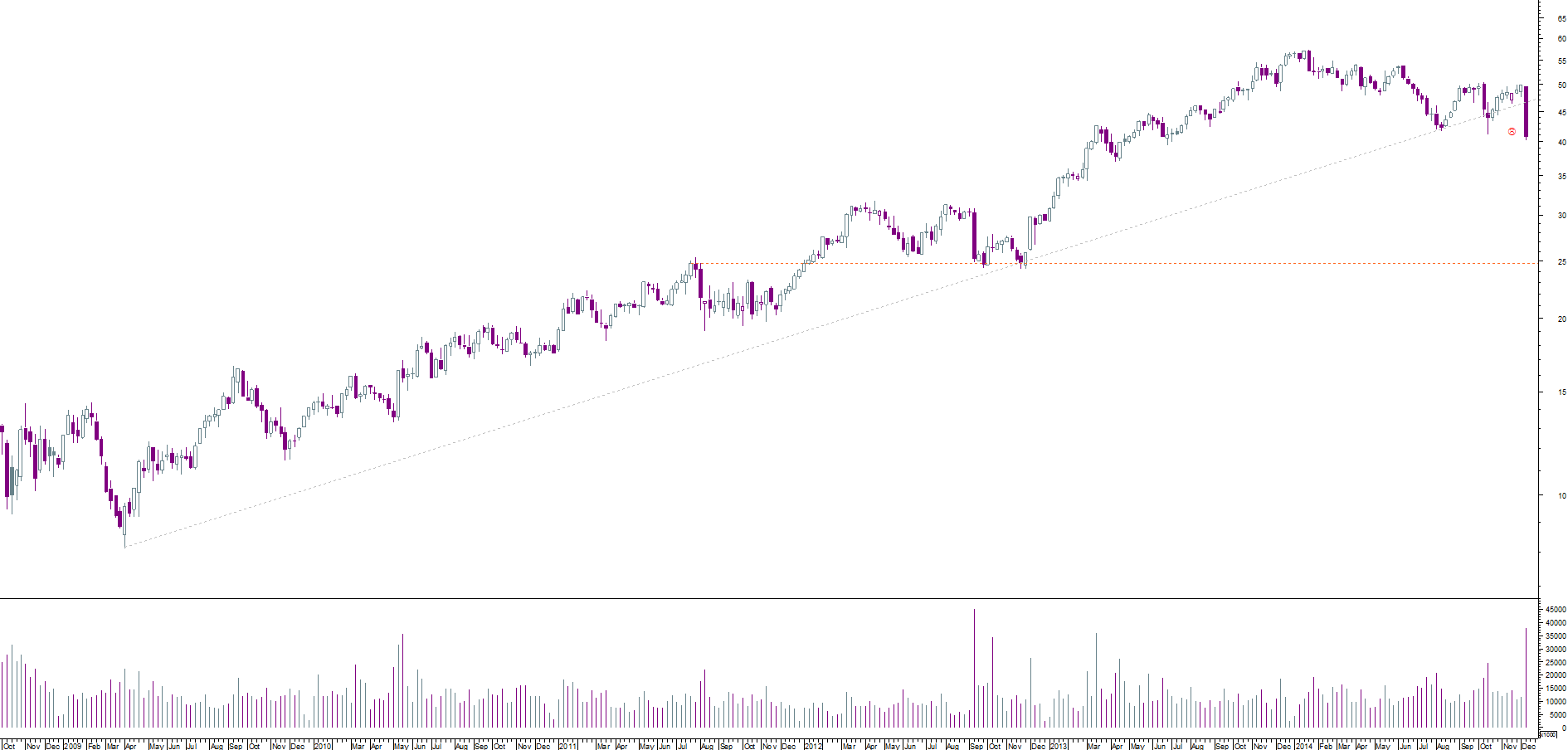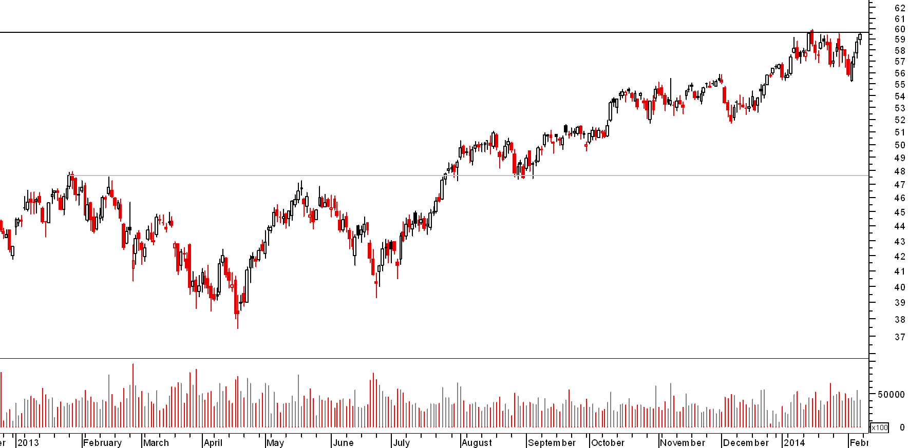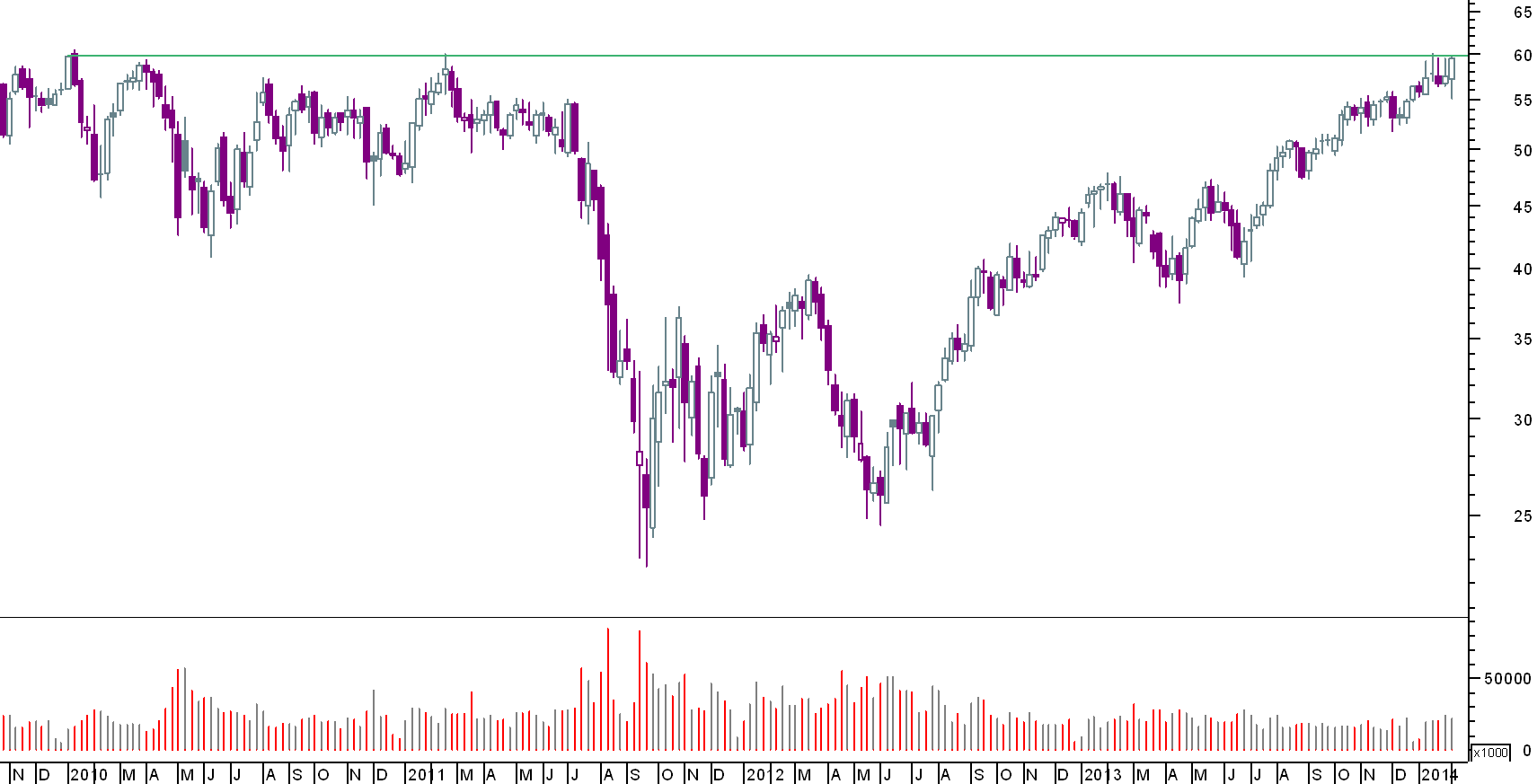 dada a velocidade das quedas do verão passado, o mercado foi incapaz de criar suportes; actualmente o reverso da medalha é que o banco tem caminho aberto pelo menos até aos 48/49