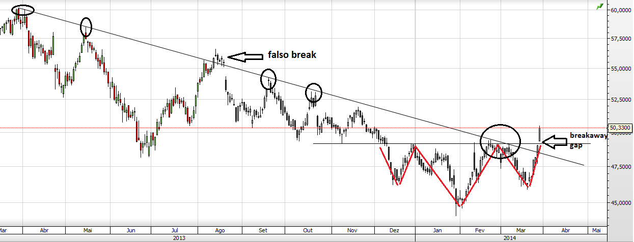 Enquanto a acção continuar entre os 49 e os 54 nada se pode concluir acerca do rumo a seguir.