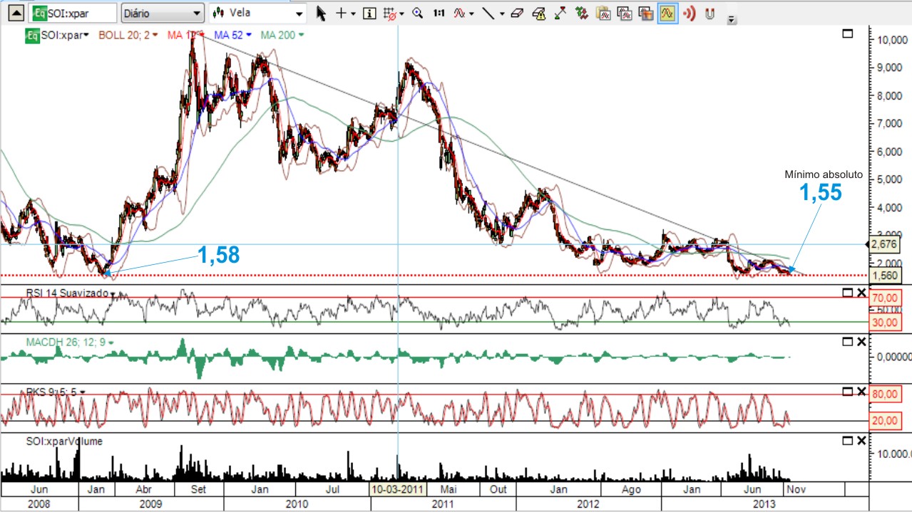 Em minha opinião, enquanto a cotação não passar os 2,10 o duplo fundo não passa de wishful thinking