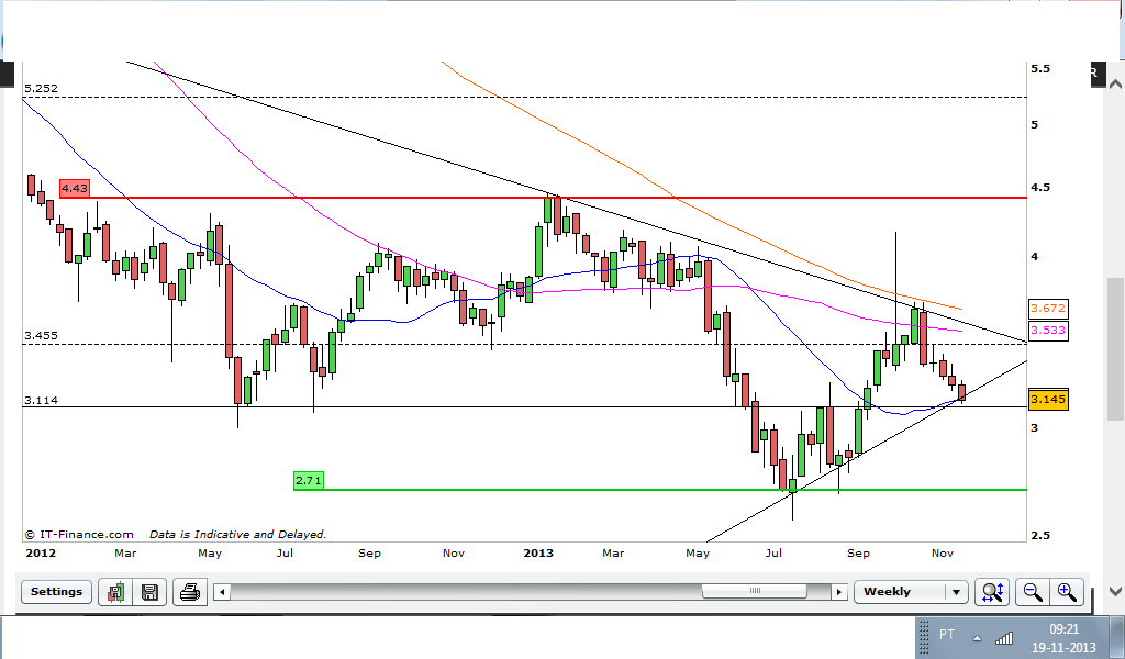 Se tal não acontecer temos o próximo suporte fraco na zona dos 3 euros e o mais forte na zona dos 2,73...