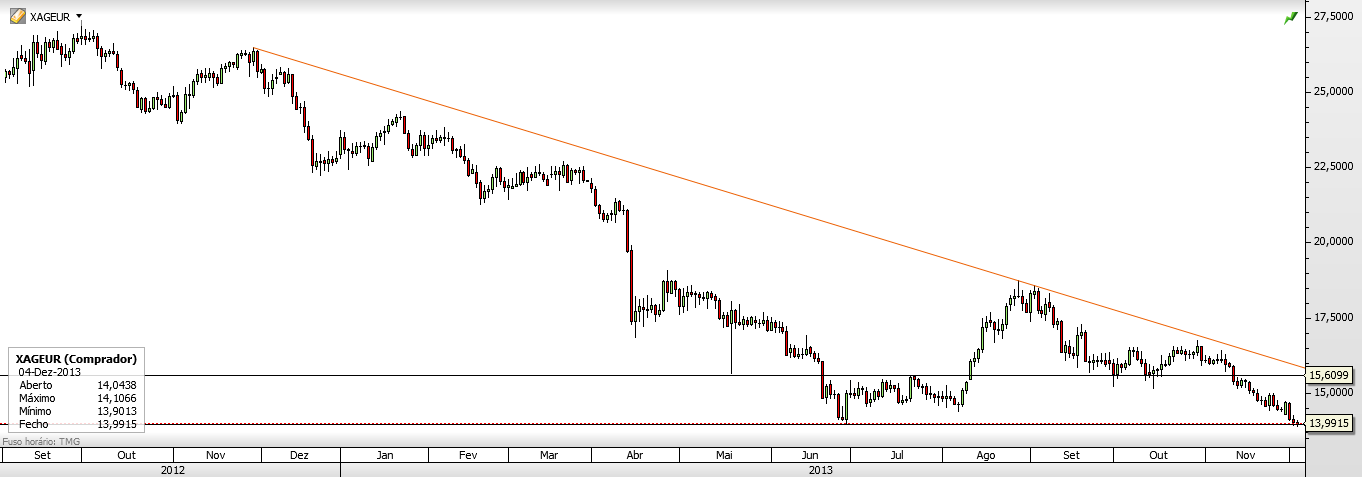 a prata passeia-se hoje abaixo dos 20 dólares.