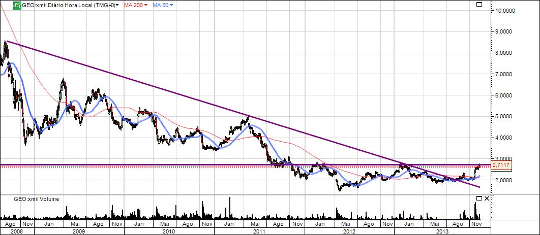 Possível breakout na GEOX. Fecho mais alto em 2 anos.
