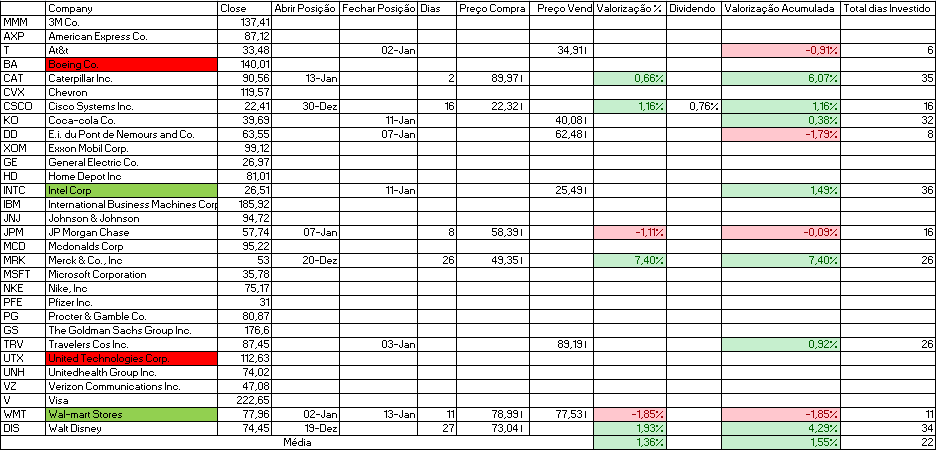 Hoje como indicado adquirimos United Technologies Corp. e vendemos E.i. du Pont de Nemours and Co., Microsoft Corporation e Walt Disney.