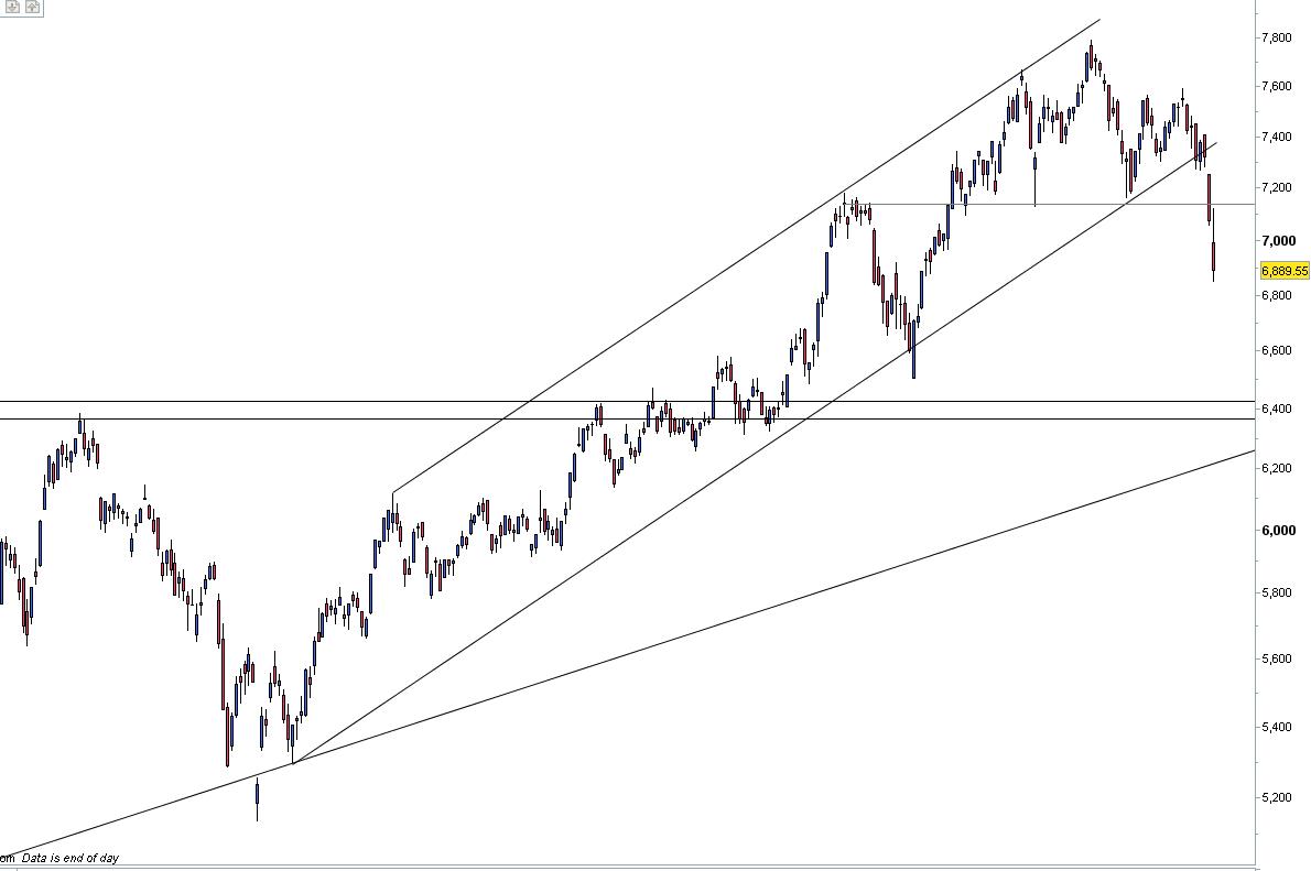 a quebra do suporte nos ~7180 aliada á quebra da LTa de 10 meses ditou uma reversão de tendência de médio prazo. quem resolveu ignorar estes sinais, terá que acartar com as consequências...