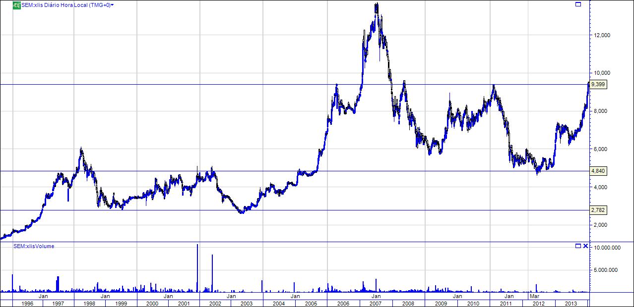 Após uma valorização de 25 % em Janeiro de 2013, a cotação lateralizou até finais de Setembro. Desde Setembro que a cotação vem num canal ascendente, levando desde essa data uma valorização de 45%. Nos últimos dias, e também porque o próprio PSI 20 terá contribuído para isso, assiste-se a uma retração que culminou com a passagem da linha da cotação da acção para debaixo da linha da média móvel de 10 dias. A longo prazo é de esperar que continue numa linha ascendente. No curto prazo acredito numa lateralização, ou até numa correcção até aos 8,25 €.