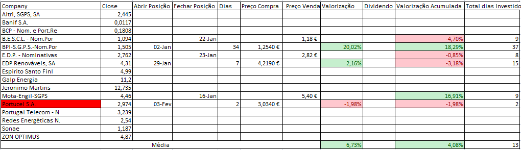 Nota: Sempre que tiver laranja antes do título, é porque dependendo do comportamento da acção no dia seguinte, a posição poderá mudar para "Neutra". Nestes casos irei simular o fecho para perceber se a posição de "Longa" se mantém e só irei adquirir se tal se verificar.