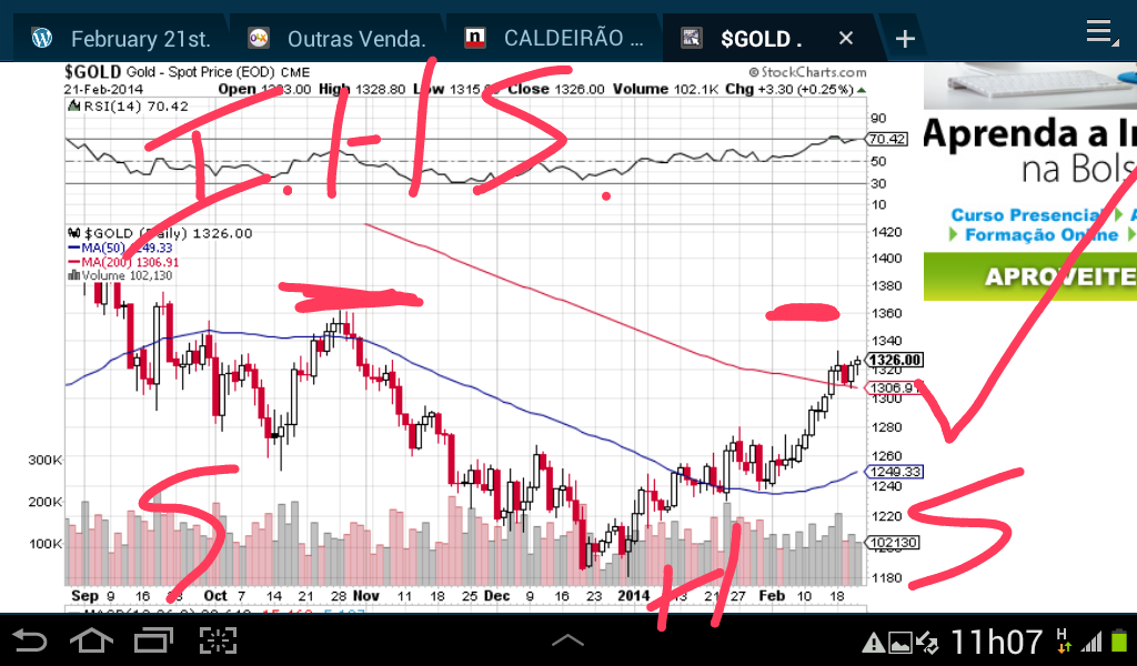 Meti um longuito no ouro, pouca coisa. Depois desta bull flag estar terminada (target nos 1350....quem sabe....)deve haver novo pullback à mm50.