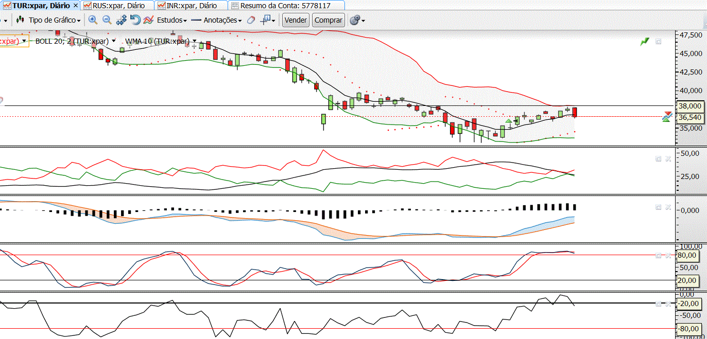 3) Indicadores técnicos oscilatórios indicam inversão de tendência de curto prazo favorável ao fecho de posição longas e abertura de posições curtas;