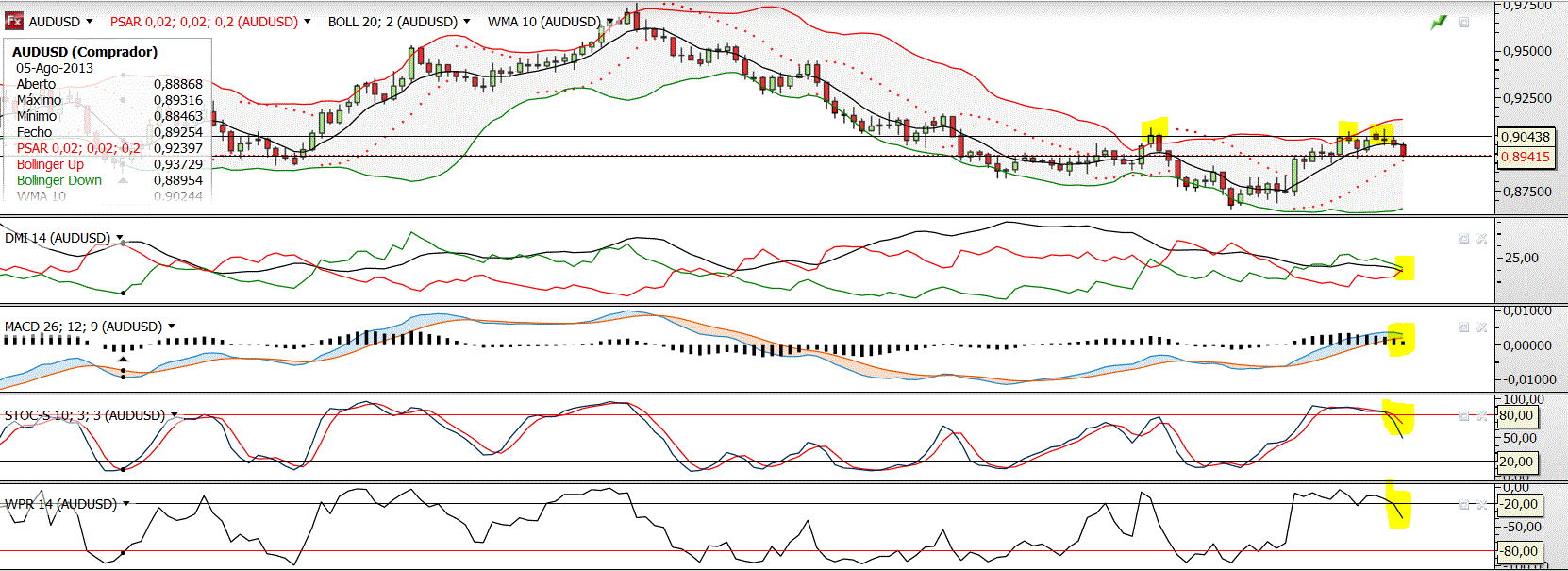 1 - Indicadores oscilatórios parecem indicar que a tendência ascendente de curto prazo se esgotou;