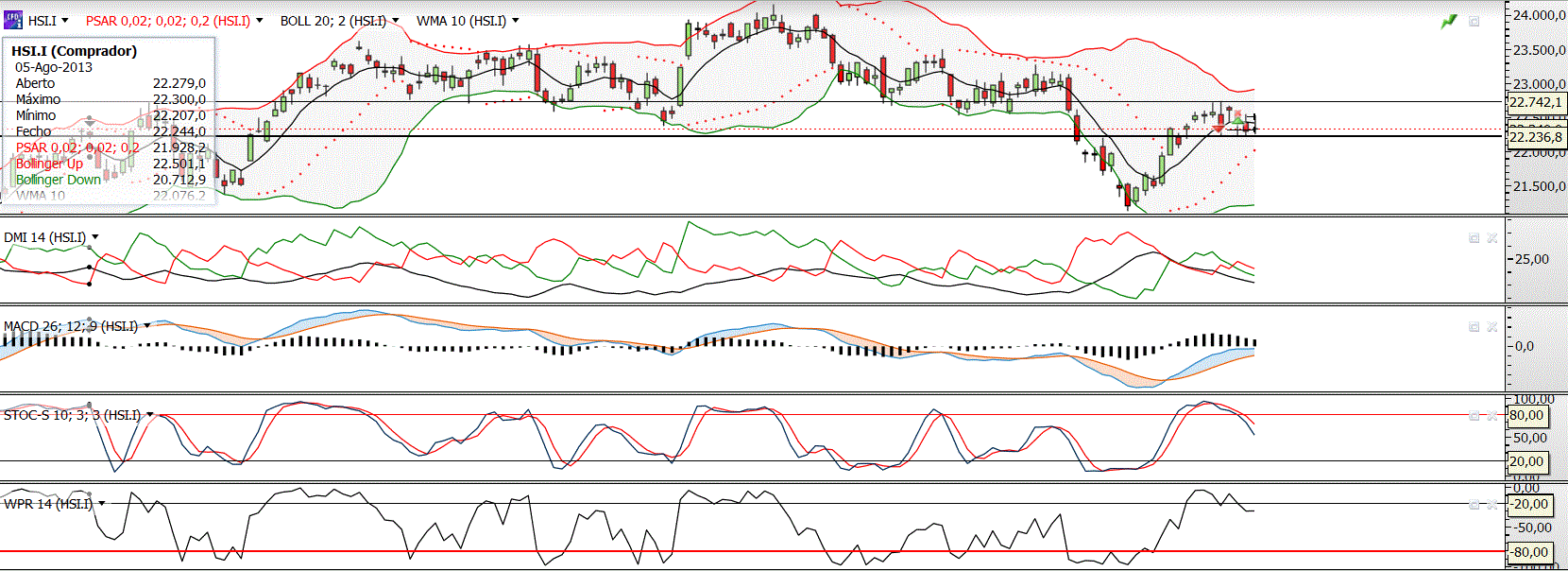 E, lá estava eu a olhar para o índice HSI que está a cotar há alguns dias num range apertado mas que apresenta, tecnicamente, sinais de inversão da tendência de curto prazo de longo para curto, embora ainda não se tenham confirmado inteiramente esses sinais.