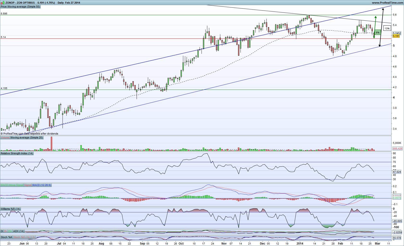 O potencial de valorização da Zon Optimus é de 5,4% em relação aos 5,357 euros a que está a negociar em bolsa esta segunda-feira, 24 de Fevereiro, dia em que segue a perder 0,98%. A recomendação da casa de investimento é de “manter”, com um risco médio.