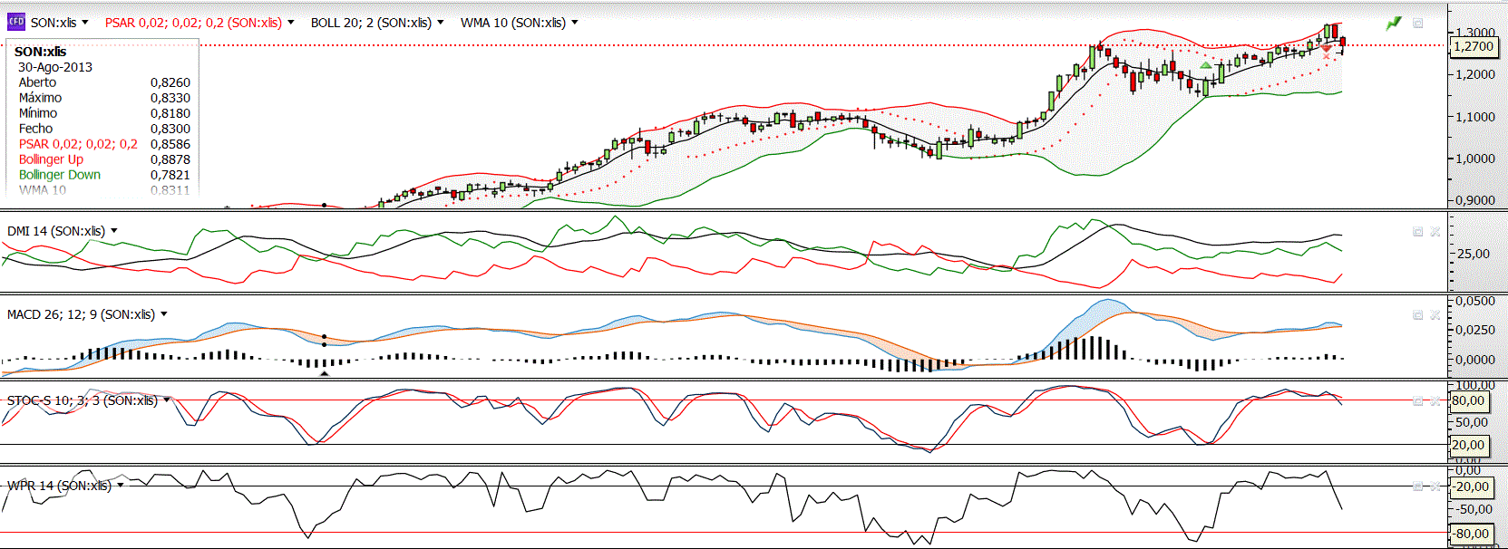 2 - Caso, amanhã, no fecho, a cotação seja inferior ao do fecho de hoje, pondero novamente entrar no título, mas agora com uma posição curta a fim de tentar apanhar um novo swing.