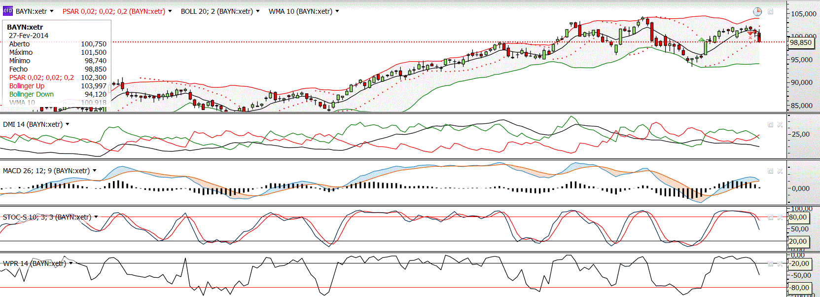 2 - Macd descendente e restantes indicadores oscilatórios parecem confirmar uma inversão de tendência de curto prazo de longo para curto, importando ainda referir que a cotação no fecho de hoje foi inferior à das últimas duas velas.