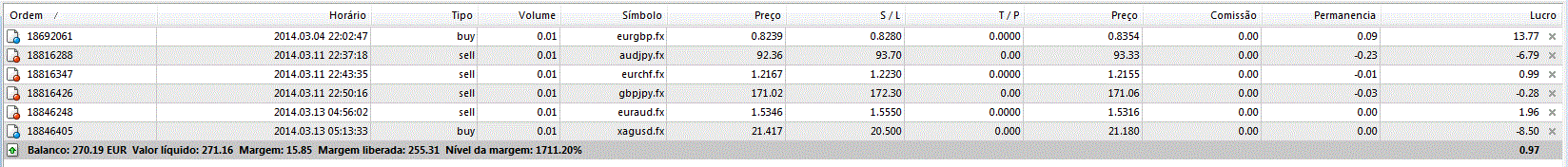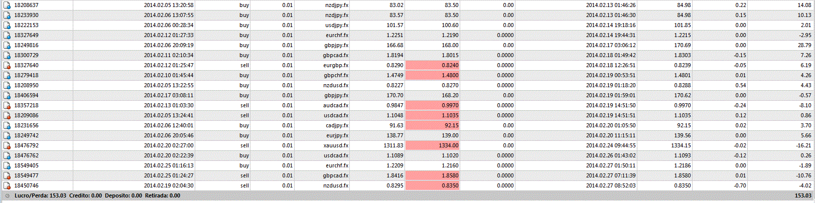 Por sua vez, fica aqui o quadro de todas as transacções fechadas do mês de Fevereiro no mercado forex.