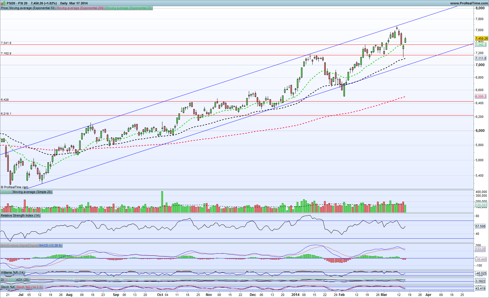 Até aí estava confortável até ver o que ela faria ao reaproximar do topo do canal novamente. Que o índice estava com os indicadores esticados já toda a gente sabia, tal que o respirar do RSI aos 50 é positivo, tirando a ligeira divergência.