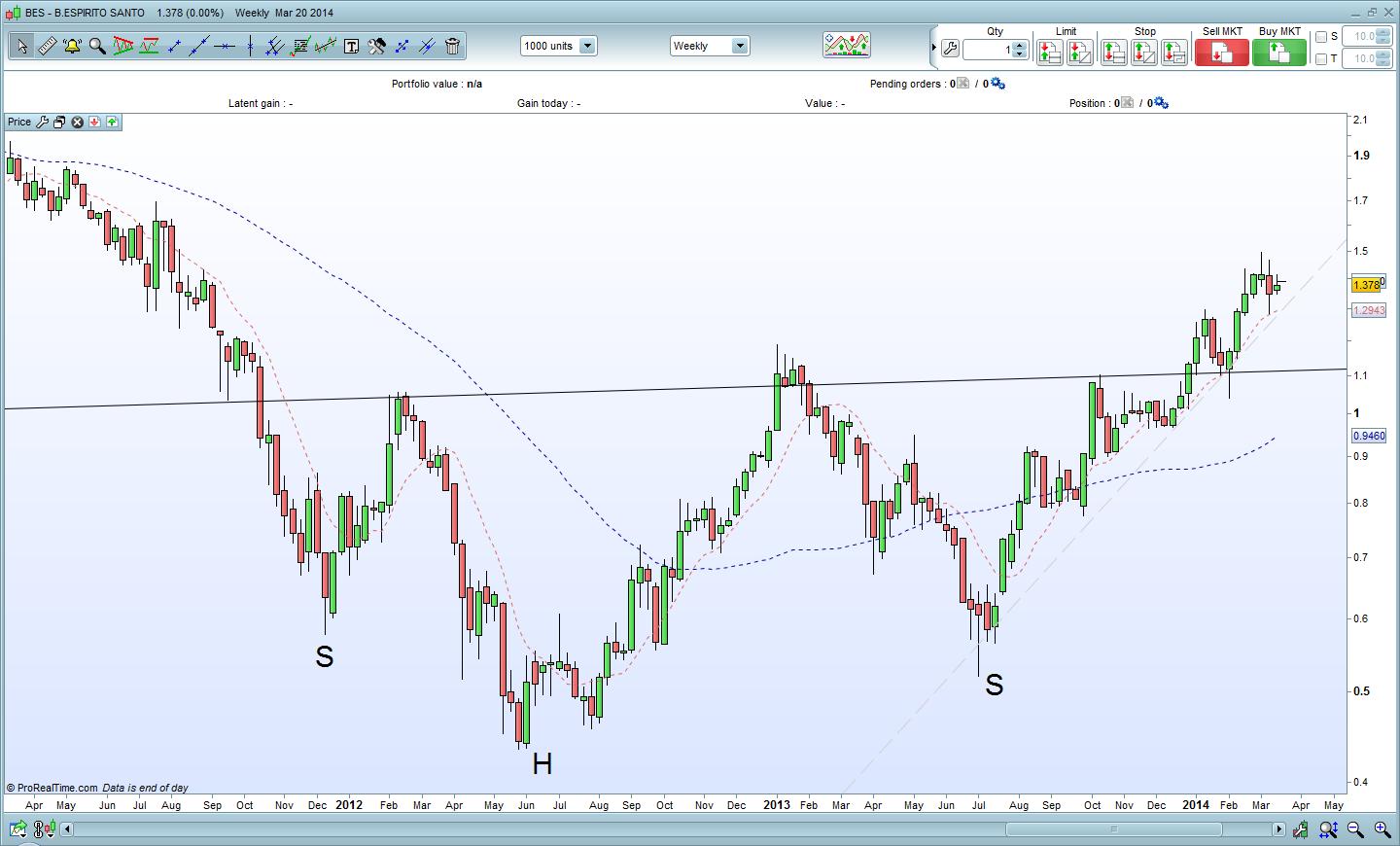As implicações deste H&S poderam levar o BES acima dos 2€ no longo prazo.