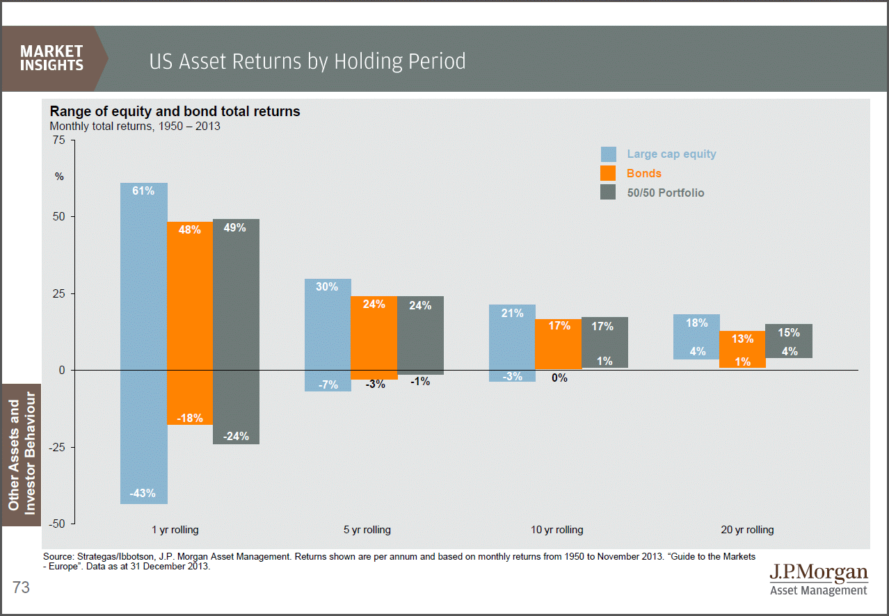 Existe relevância no alargamento do horizonte temporal nas análises dos mercados, através das diferentes classes de activos, acções, obrigações, matérias-primas, imobiliário, mercado monetário e outros investimentos alternativos, como os Hedge funds. Analisando não só os retornos sejam eles em USD ou EUR ou até mesmo, em moeda local, mas também as correlações entre as várias classes de activos. E com base na diversificação nas diversas classes de activos e no horizonte temporal ajustados a cada perfil de risco do investidor, pode-se construir uma carteira de activos, á medida de cada investidor. As performances passadas não são garantias de performances futuras.